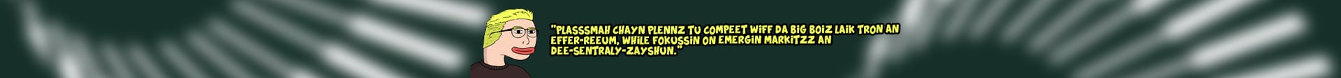 Not jus’ normall chayn, dis iz da tippy-top sky-blazz plasttma enginn, shakin’ da cripto wurldd.